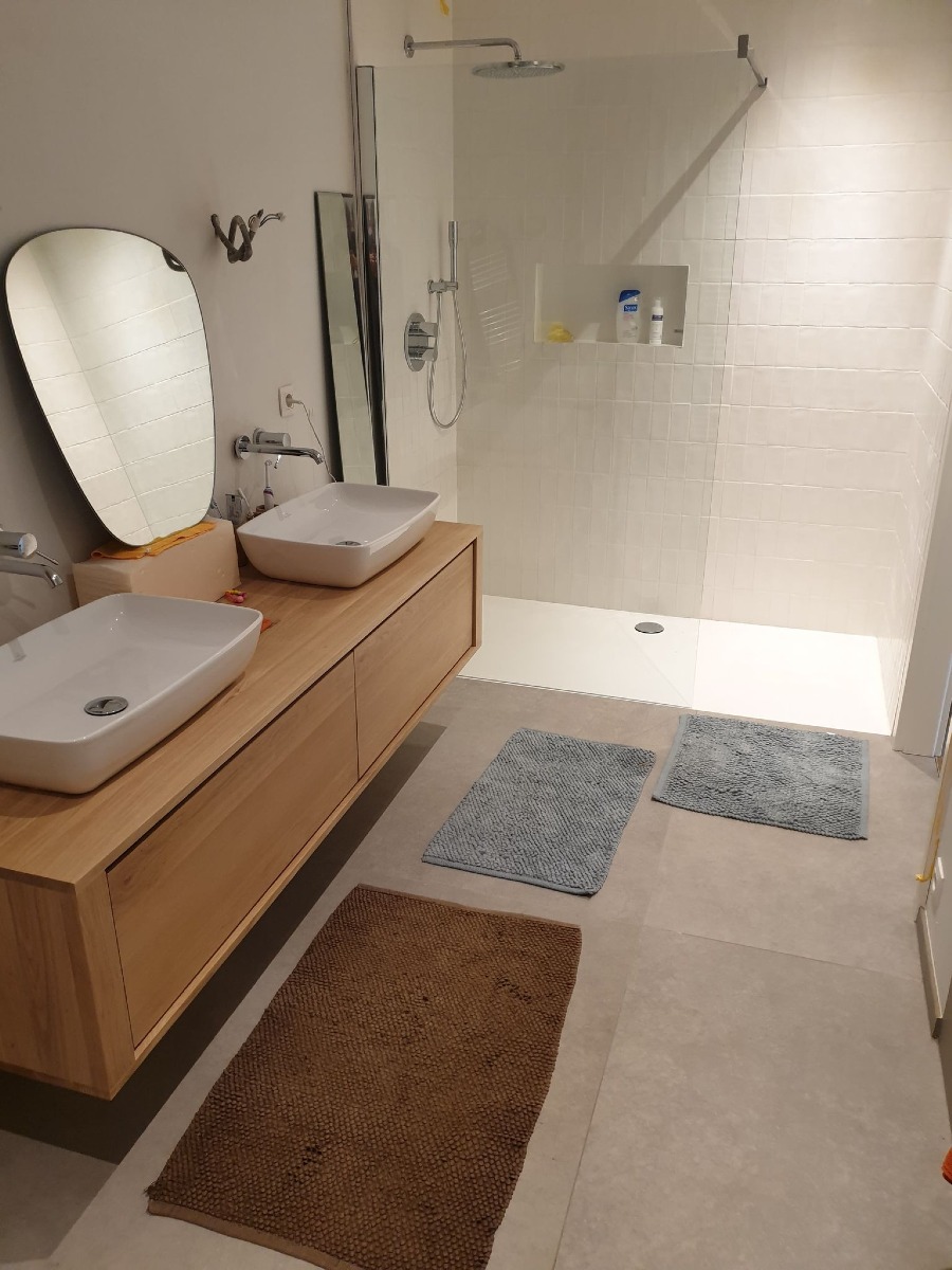 Vous recherchez un prestataire pour transformer votre salle de bain ? Dans le cadre d'une nouvelle construction, vous souhaitez aménager une nouvelle alle de bain parfaitement fonctionnelle et esthétique selon vos envies ? Nous vous proposons nos services pour la conception ou la rénovation de salle de bain de la pose de robinetterie et équipements sanitaires jusqu'aux travaux de parachèvement avec la pose de carrelage et de vos meubles de salle de bain. Notre équipe est à votre écoute pour vous aider à choisir les meilleures solutions pour votre salle de bain et vous offrir un service de grande qualité. Nous travaillons en respectant les normes en vigueur, en utilisant du matériel robuste et en vous installant la ventilation de salle de bain adéquate selon la législation. Nous pouvons intervenir dans les villes de Verviers, Dison, Theux et environs. Vous souhaitez moderniser votre salle de bain ? Faites appel à nos services pour transformer votre salle de bain et la rendre plus fonctionnelle, design et confortable. Nous vous garantissons un travail soigné, des matériaux de qualité et des tarifs attractifs. Transformez votre salle de bain et profitez d'un espace de détente unique grâce à nos services.